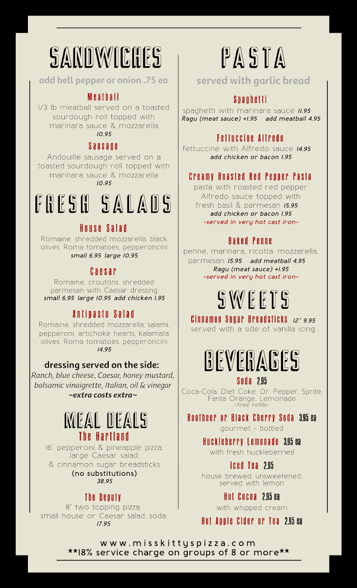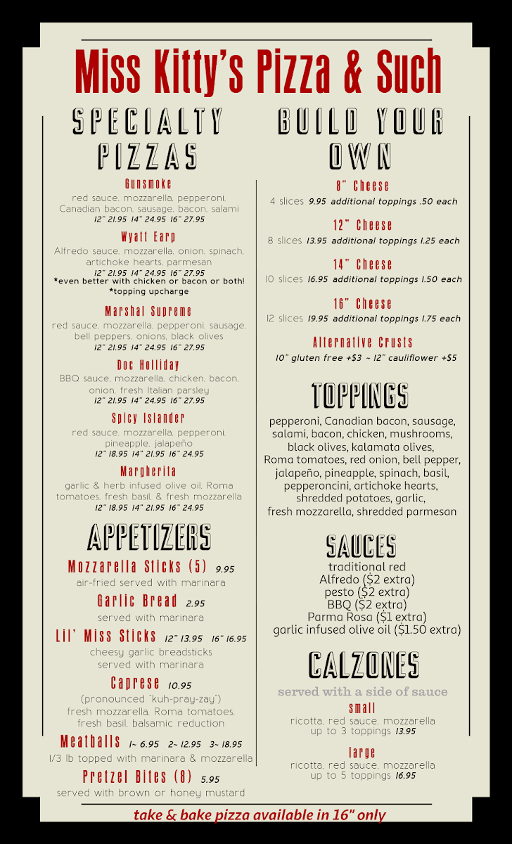 Miss Kitty's Pizza & Such Menu (2025 Update)